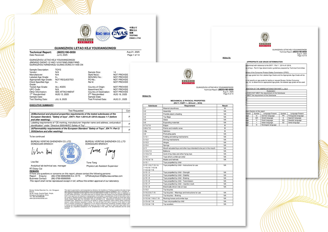 At JOYREAL, safety isn’t a checkbox—it’s our foundation. Every toy meets and exceeds rigorous international standards (CE, CPSC, CPC, ASTM), ensuring little hands explore freely while parents rest assured. These certifications aren’t just badges; they’re our promise: childhood should be wondrous, never worrisome.