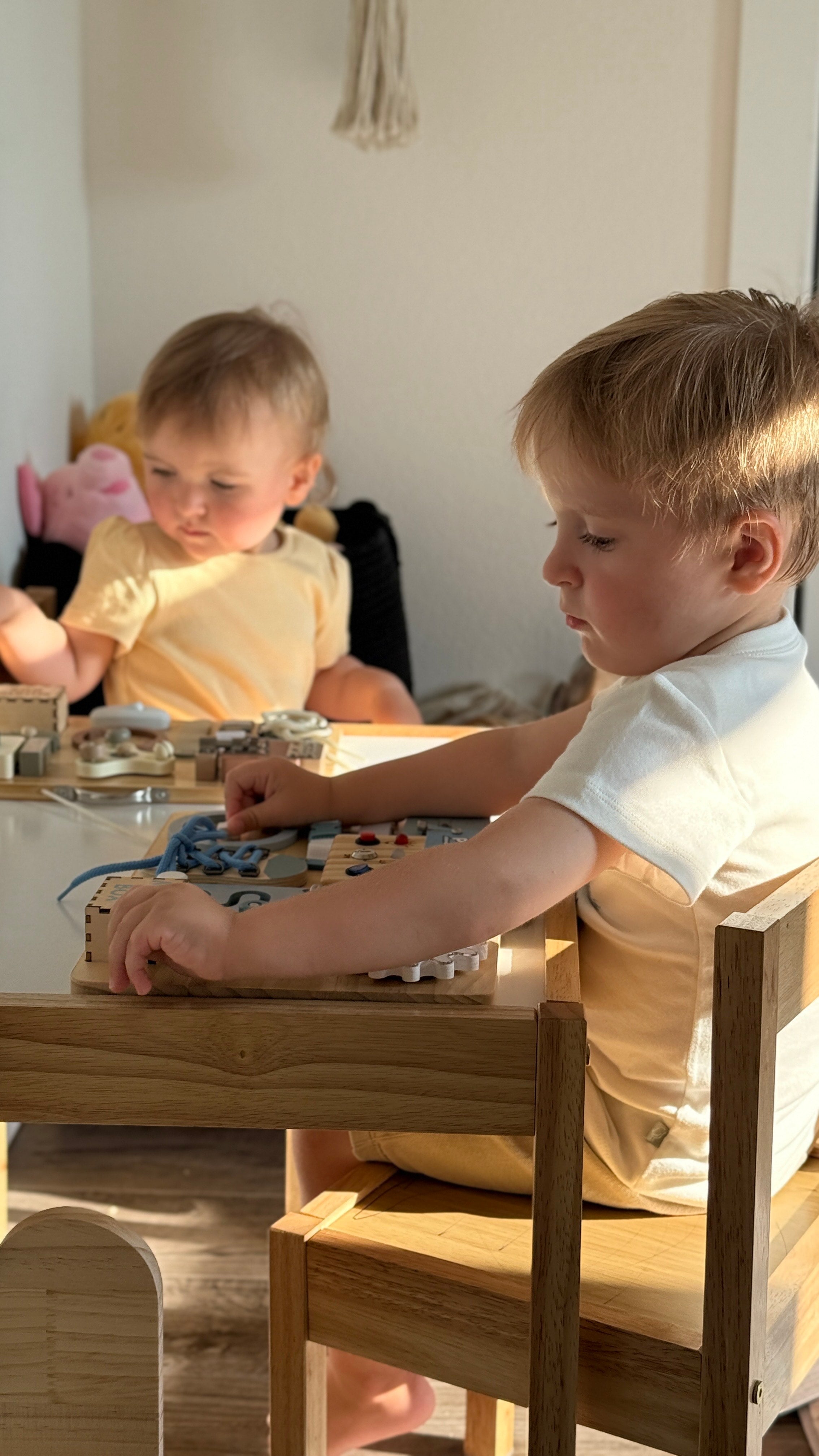 - Practical activities (pouring, buttoning) → boost motor skills & speech.